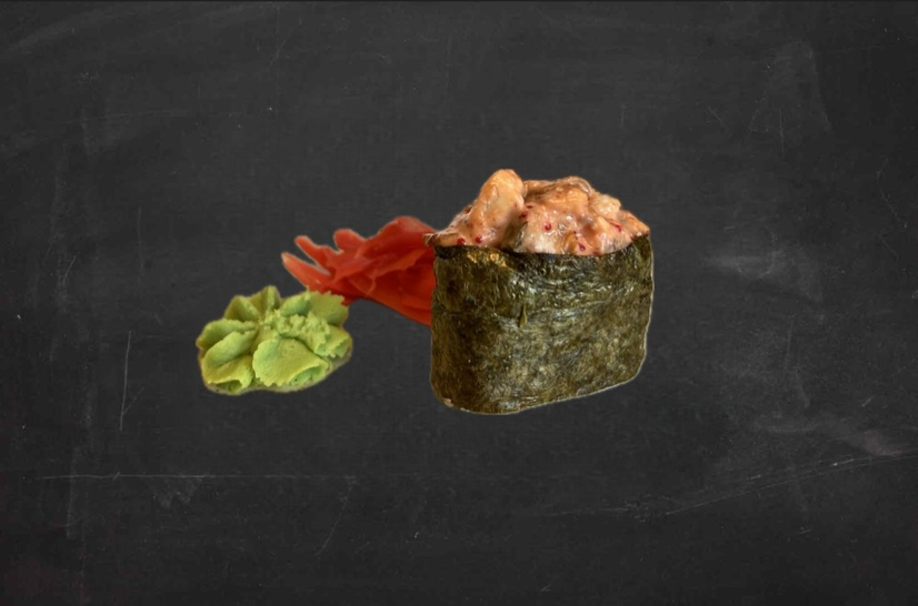 Унагі спайсі гункан — це гункан-суші, де шматочки запеченого вугра змішуються з гострим соусом і викладаються на рис, обгорнутий норі. Пікантний соус підкреслює солодкуватий смак вугра, створюючи гармонійне поєднання текстур та смаків.