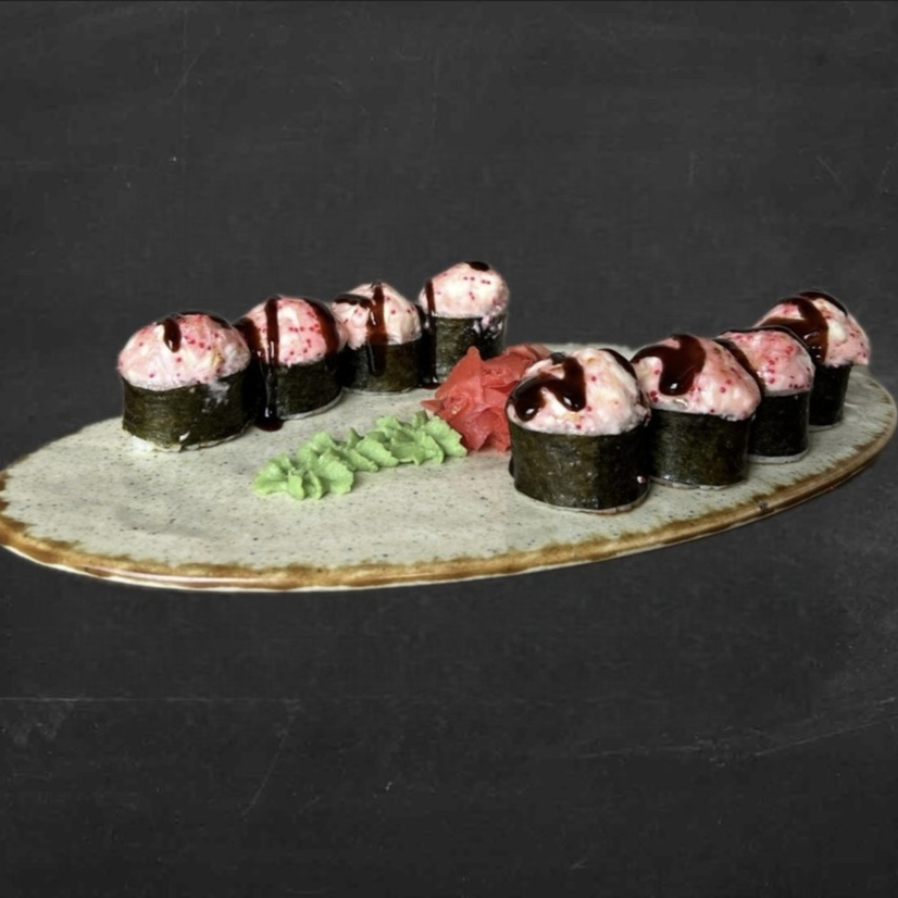 Сир, ікра тобіко. Лосось, або вугор, або тунець, або креветка
