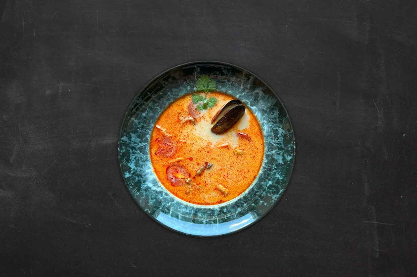 Том Ям – це знаменитий тайський суп, відомий своїм гостро-кислим смаком та ароматом. Готується на основі бульйону з курки або креветок, з додаванням кокосового молока, лемонграсу, галангалу та листя кафрського лайму. До супу додають свіжі морепродукти, гриби, помідори та чилі, які надають йому насиченого та пікантного смаку. Том Ям поєднує в собі гостроту, кислинку та ніжність, створюючи неповторний смаковий букет. Ця страва є ідеальним вибором для тих, хто шукає яскраві гастрономічні враження та любов до азіатської кухні.
